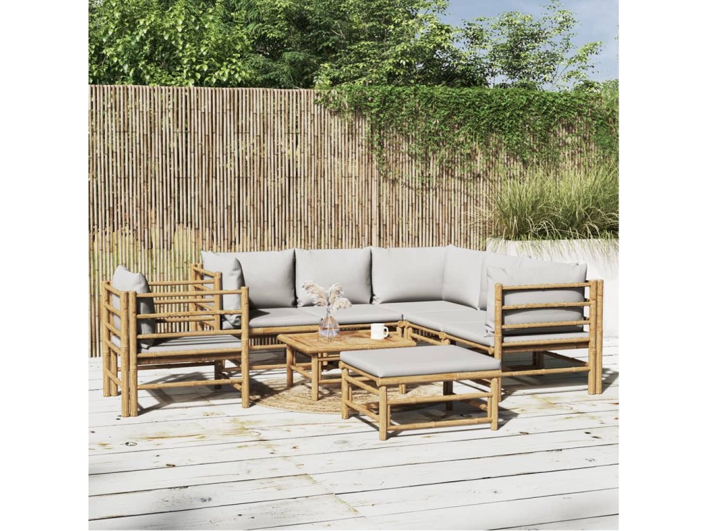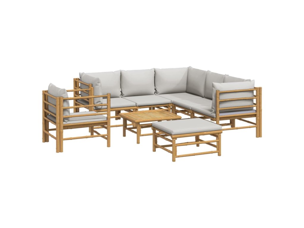 8dílná zahradní sedací souprava světle šedé podušky bambus 3155094