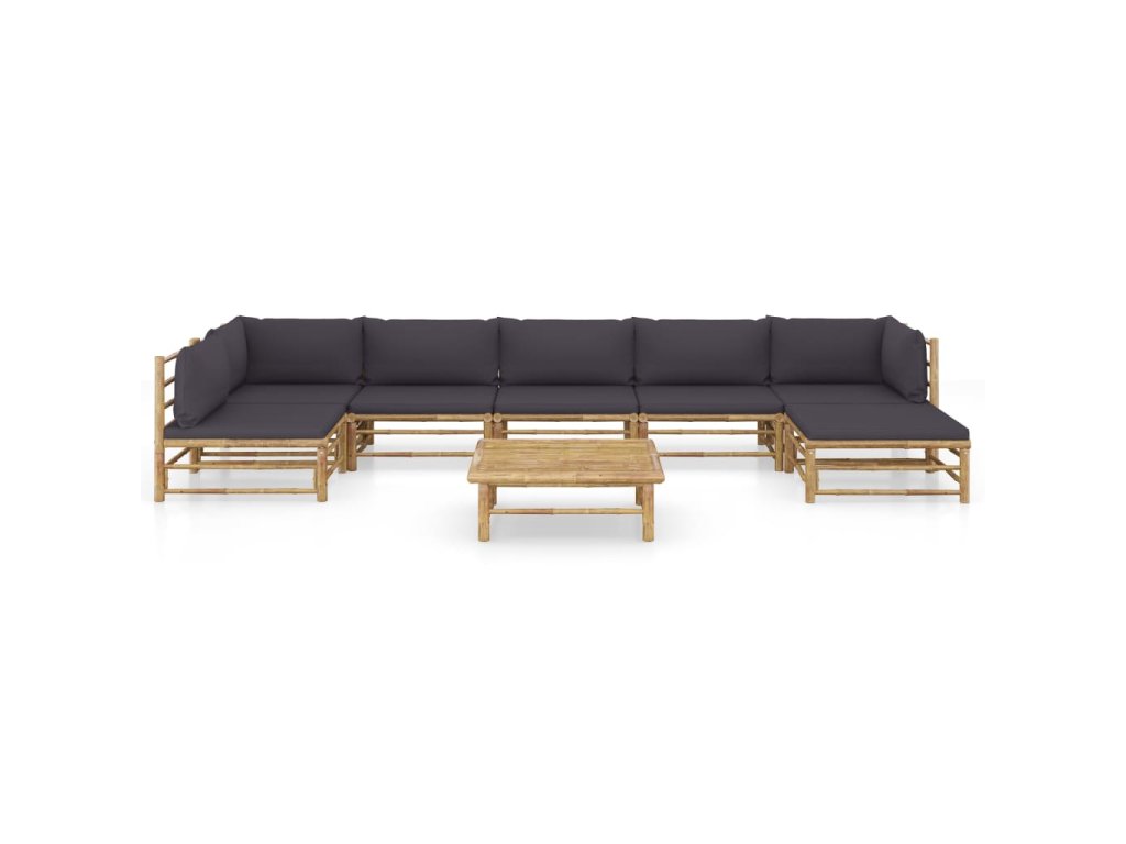8dílná zahradní sedací souprava + tmavě šedé podušky bambus 3058250