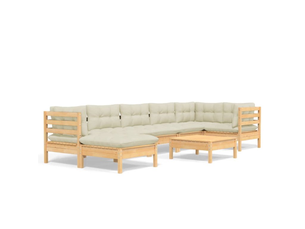 8dílná zahradní souprava krémové podušky masivní borovice 3096556
