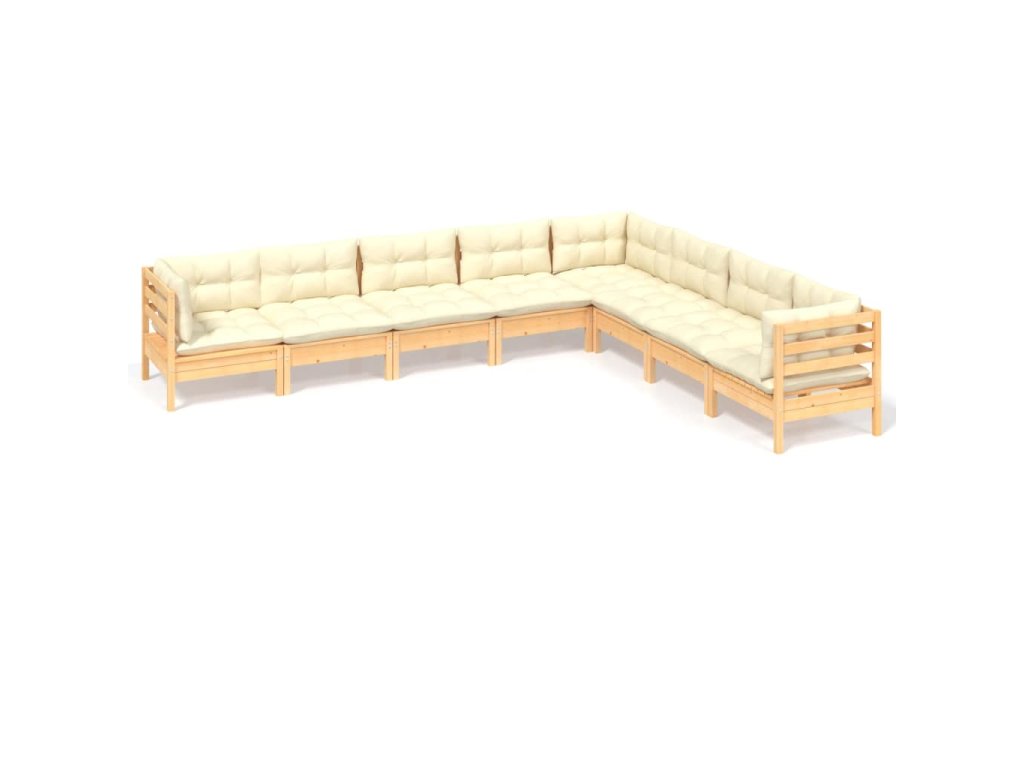 8dílná zahradní souprava krémové podušky masivní borovice 3096803