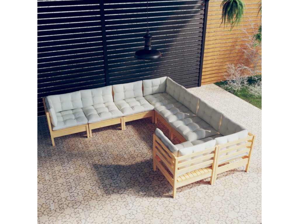 8dílná zahradní souprava krémové podušky masivní borovice 3096971