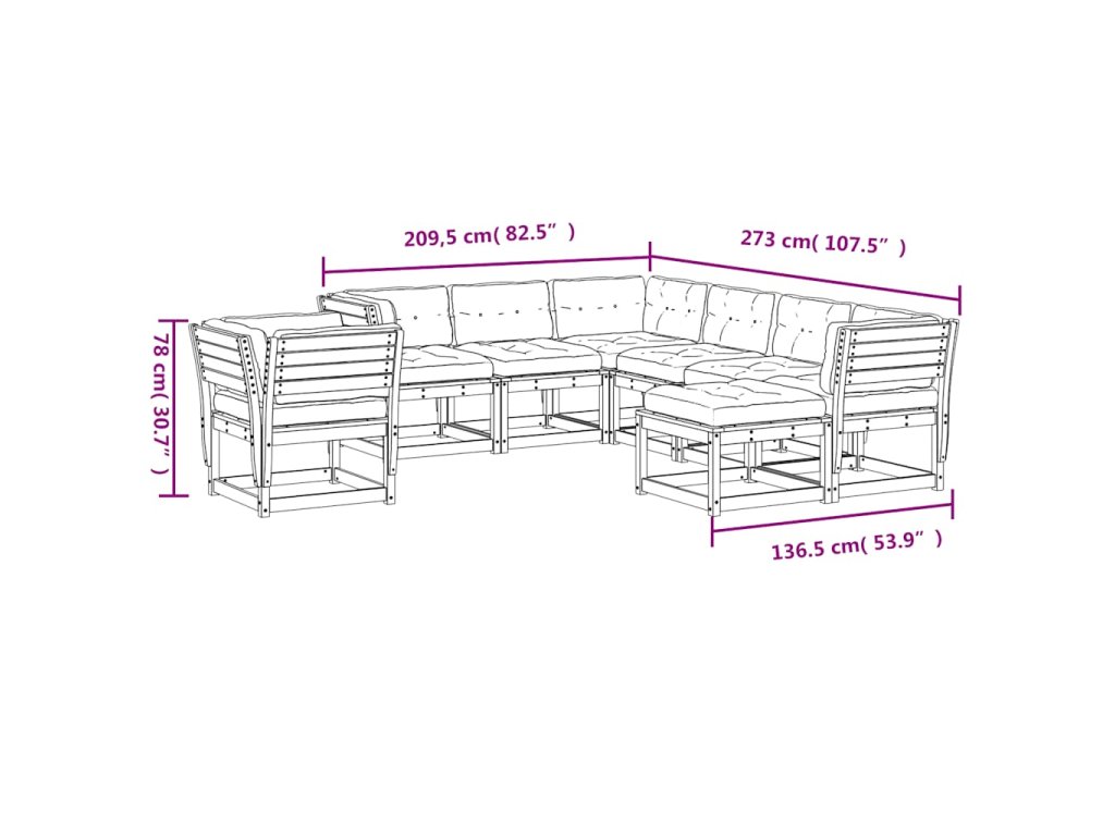 8dílná zahradní souprava s poduškami bílá masivní borovice 3216951