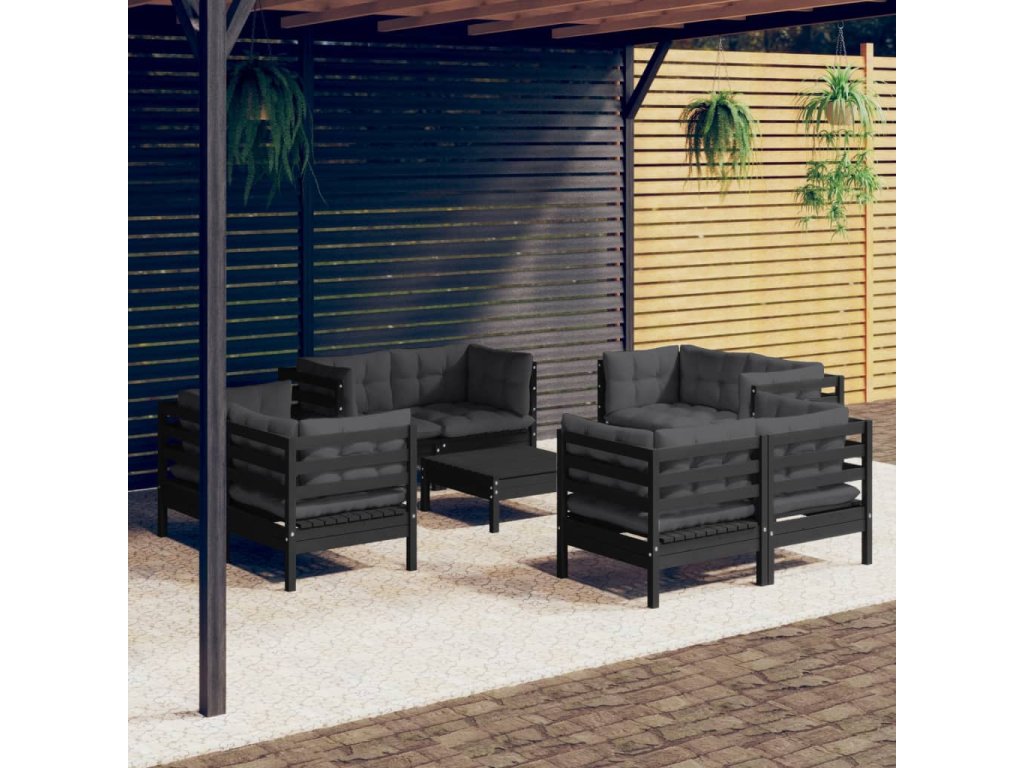 9dílná zahradní sedací souprava a antracitové podušky borovice 3096068