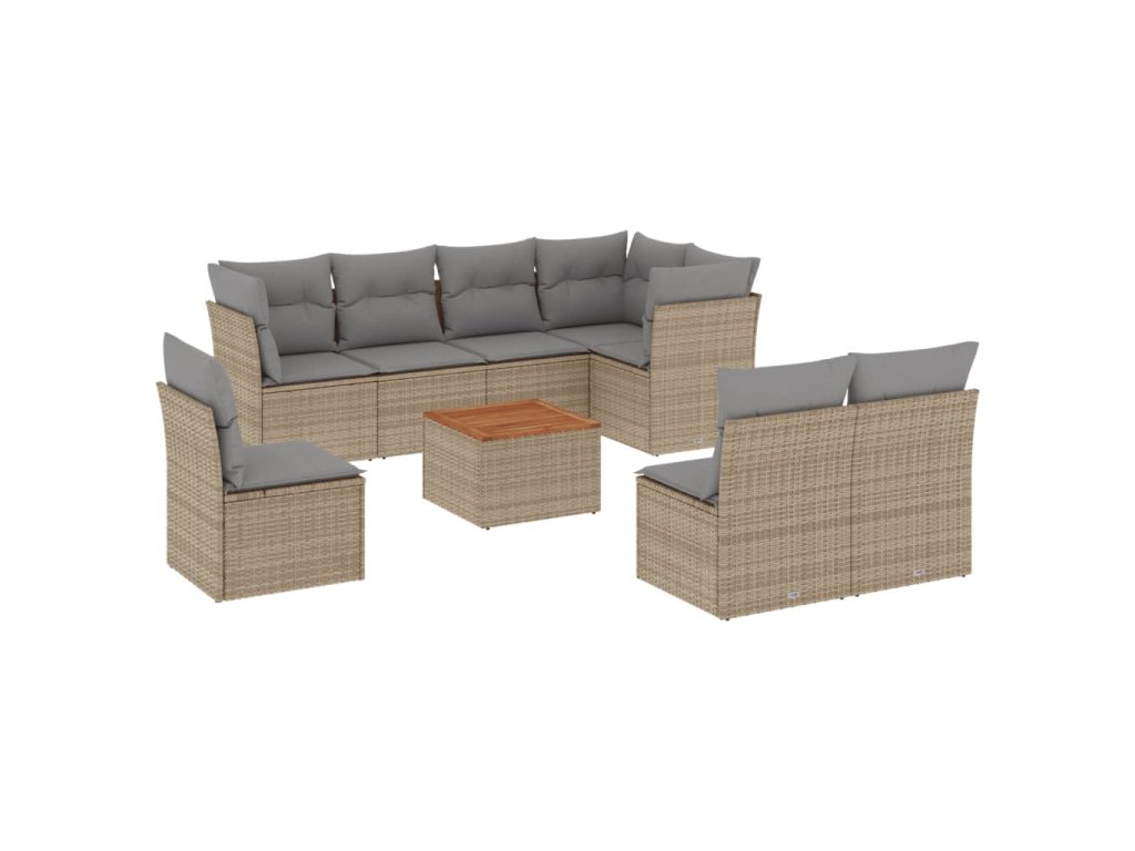 9dílná zahradní sedací souprava a podušky mix béžové polyratan 3256017