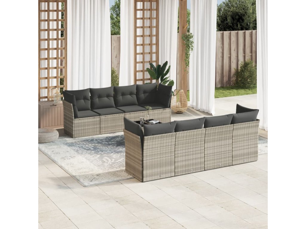9dílná zahradní sedací souprava a podušky světle šedá polyratan 3217312