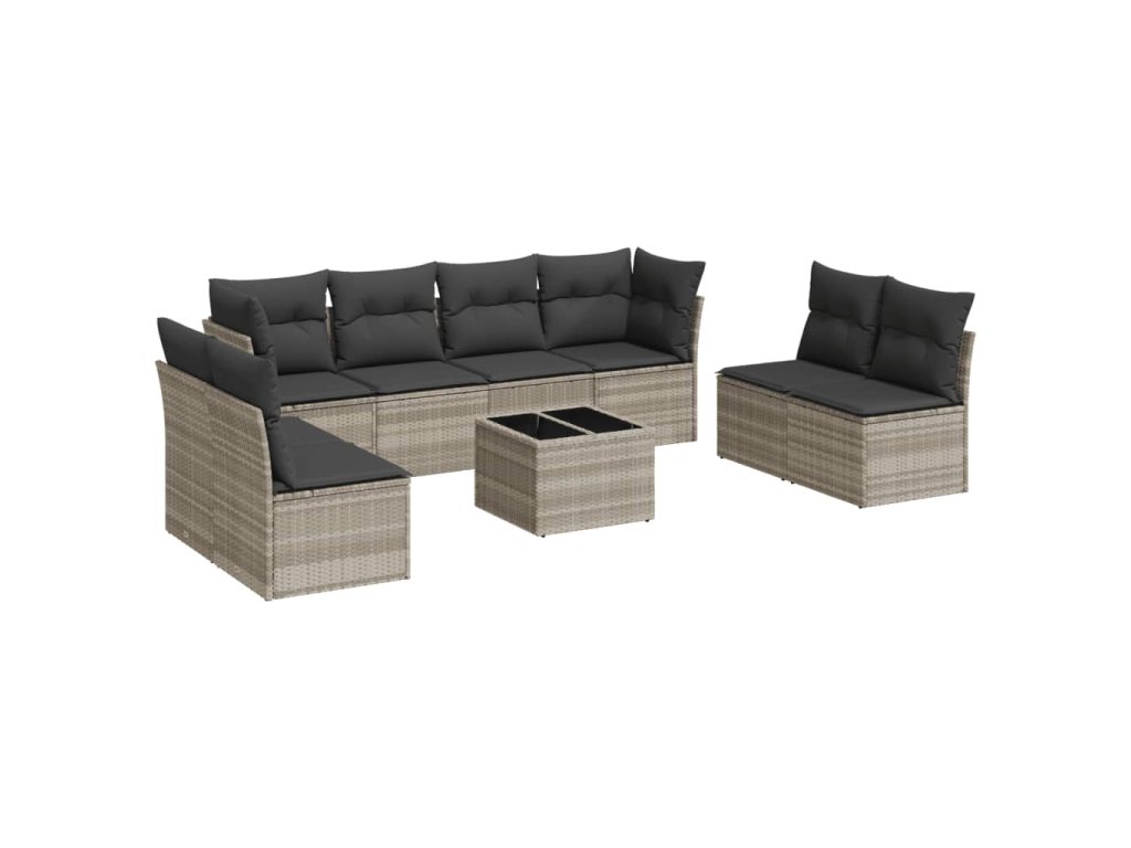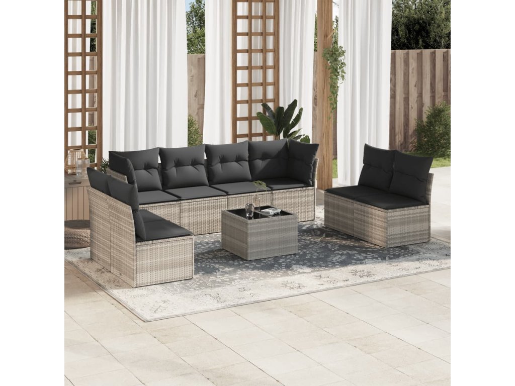 9dílná zahradní sedací souprava a podušky světle šedá polyratan 3217462