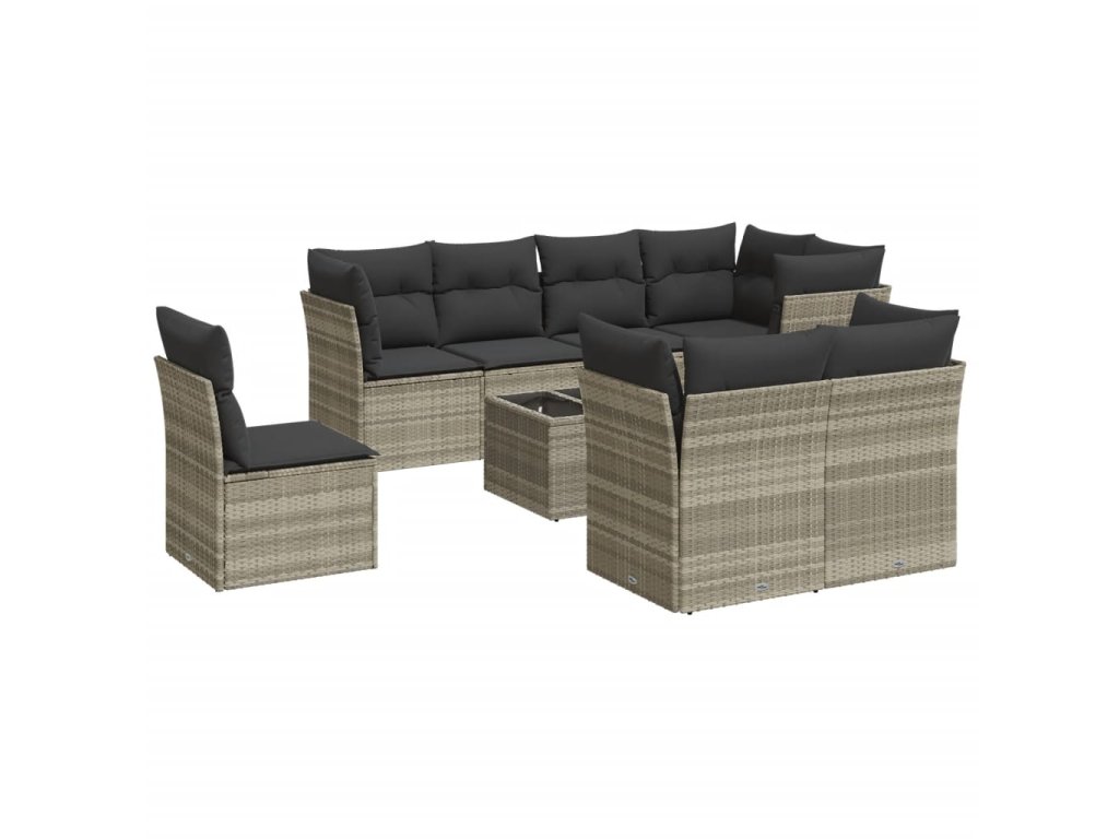 9dílná zahradní sedací souprava a podušky světle šedá polyratan 3217942