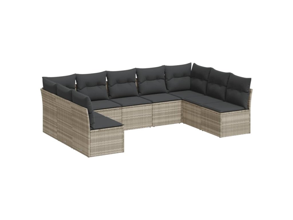 9dílná zahradní sedací souprava a podušky světle šedá polyratan 3218072