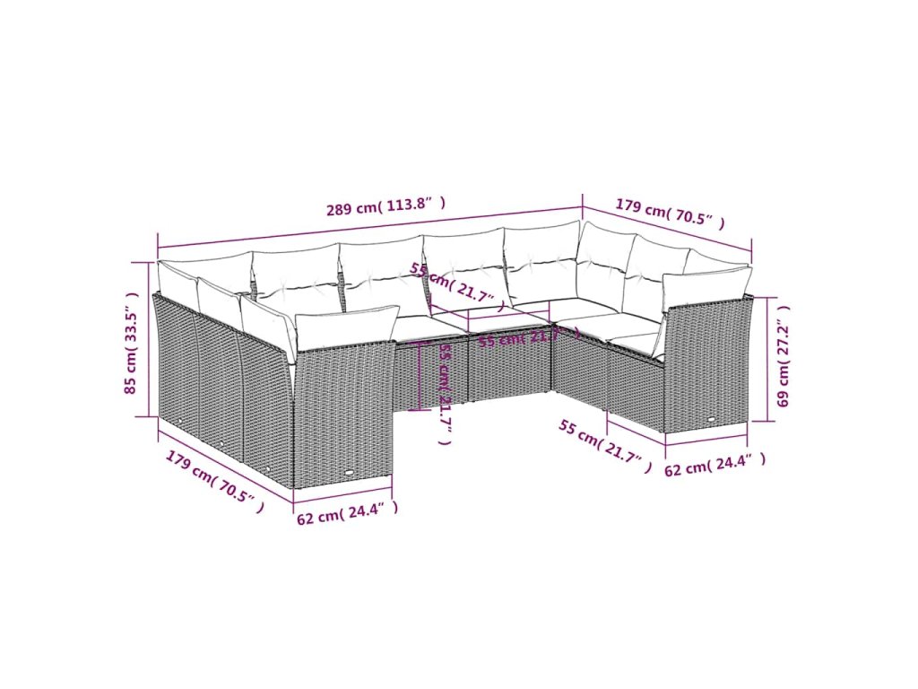 9dílná zahradní sedací souprava a podušky světle šedá polyratan 3218132
