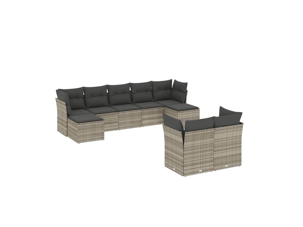 9dílná zahradní sedací souprava a podušky světle šedá polyratan 3218312