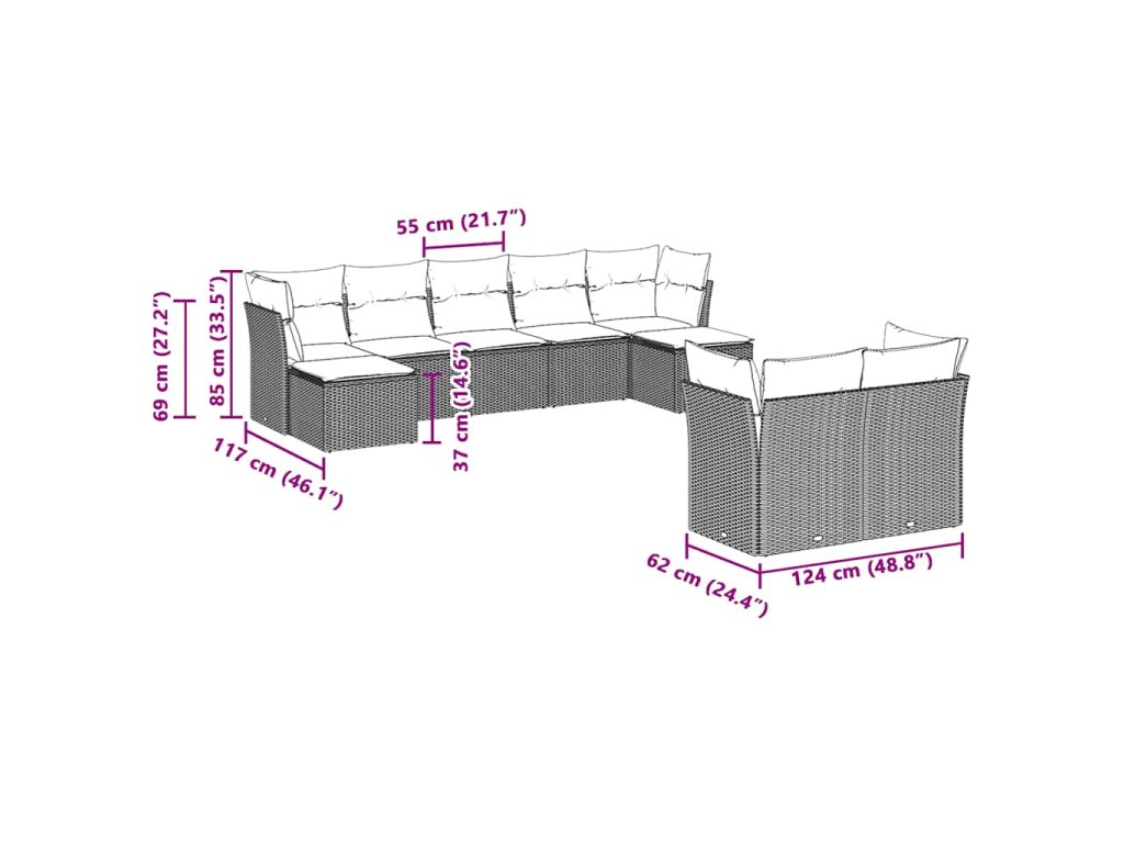 Tato zahradní sedací souprava je dokonalým doplňkem vaší zahrady, terasy nebo dvorku a poskytne vám pohodlné a příjemné místo, kde si můžete povídat s rodinou a přáteli nebo jen tak odpočívat a užívat si pobyt venku.