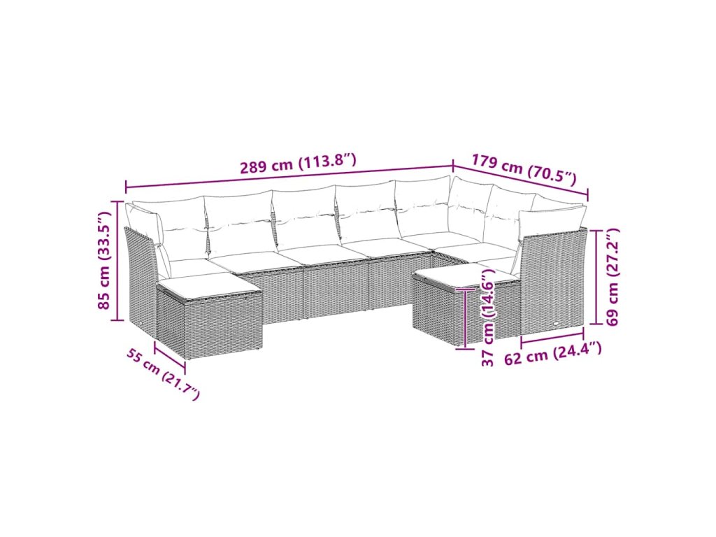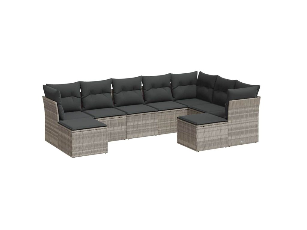 9dílná zahradní sedací souprava a podušky světle šedá polyratan 3218572
