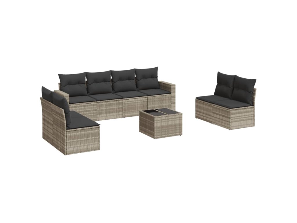 9dílná zahradní sedací souprava a podušky světle šedá polyratan 3218852