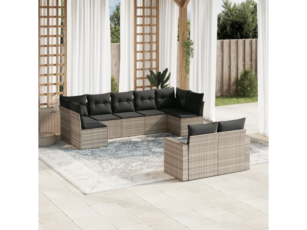9dílná zahradní sedací souprava a podušky světle šedá polyratan 3219412