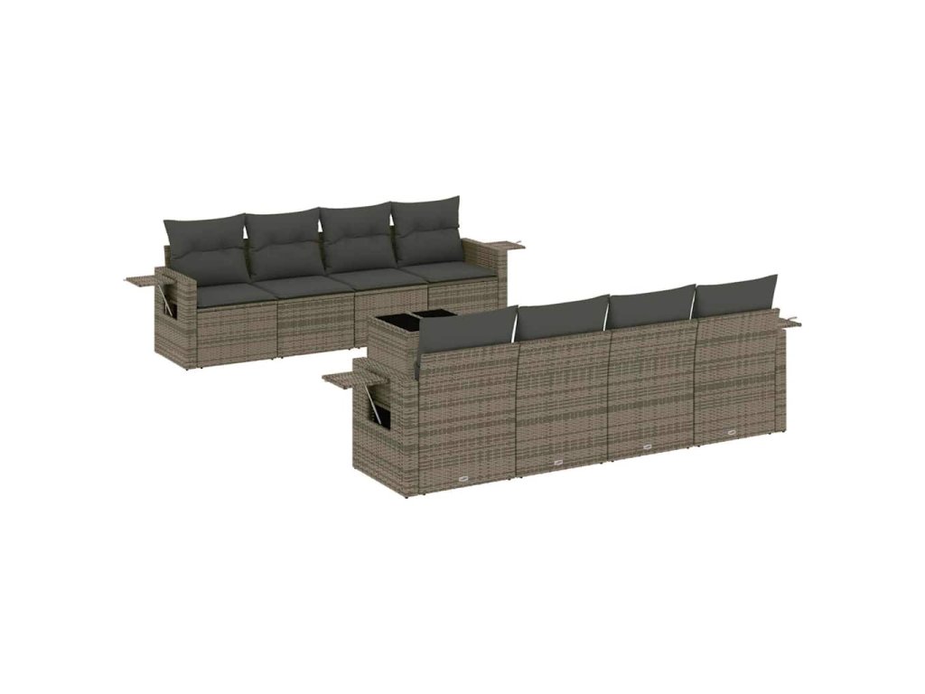 9dílná zahradní sedací souprava a podušky světle šedá polyratan 3219951