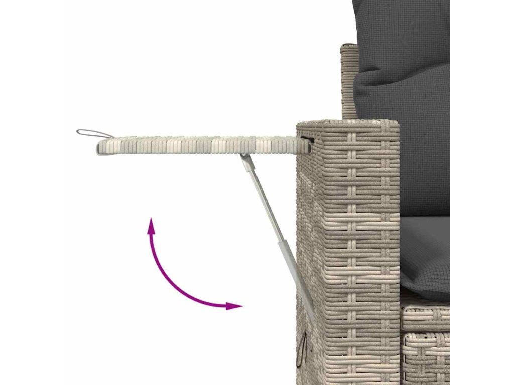 - Pohodlný odkládací stolek: Tento venkovní nábytek má na područkách skládací stolky s plynovou pružinou, jež poskytují praktické místo pro vaše nezbytnosti, kde je budete mít na dosah ruky.
