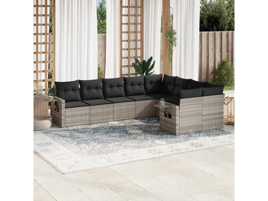 9dílná zahradní sedací souprava a podušky světle šedá polyratan 3220641