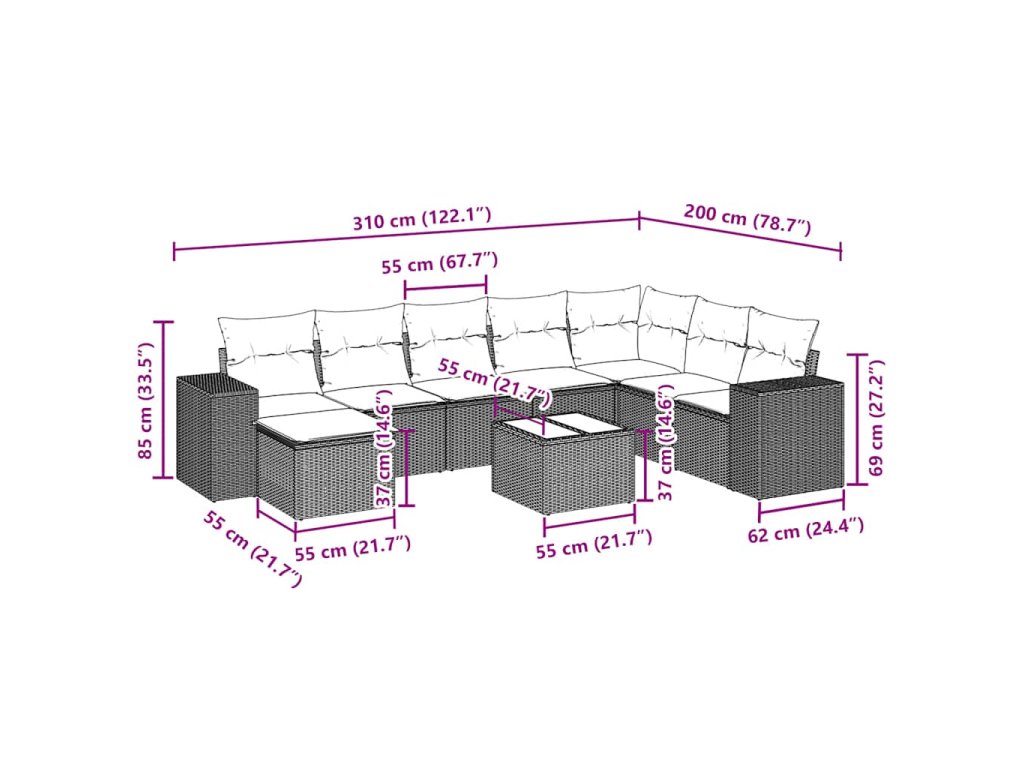 Tato zahradní sedací souprava je dokonalým doplňkem vaší zahrady, terasy nebo dvorku a poskytne vám pohodlné a příjemné místo, kde si můžete povídat s rodinou a přáteli nebo jen tak odpočívat a užívat si pobyt venku.