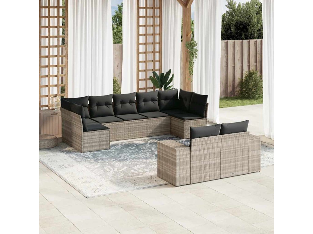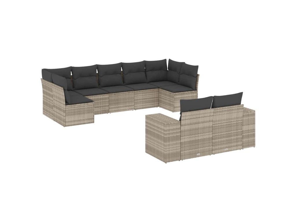 9dílná zahradní sedací souprava a podušky světle šedá polyratan 3223021