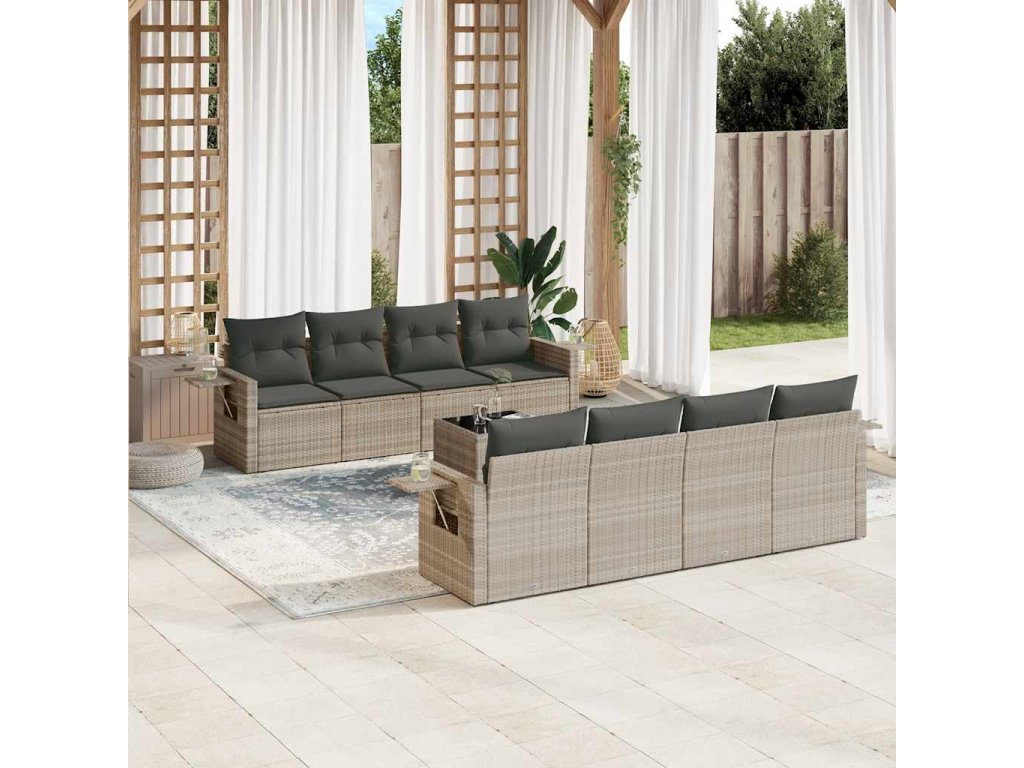 9dílná zahradní sedací souprava a podušky světle šedá polyratan 3252289