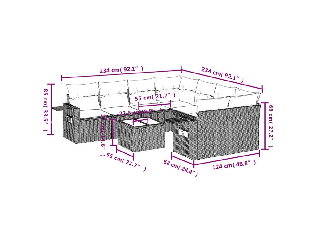 Tato zahradní sedací souprava je dokonalým doplňkem vaší zahrady, terasy nebo dvorku a poskytne vám pohodlné a příjemné místo, kde si můžete povídat s rodinou a přáteli nebo jen tak odpočívat a užívat si pobyt venku.