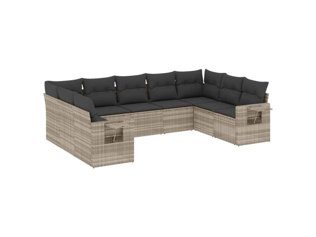 9dílná zahradní sedací souprava a podušky světle šedá polyratan 3252939