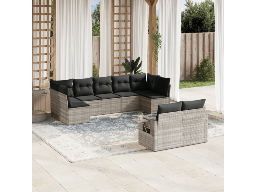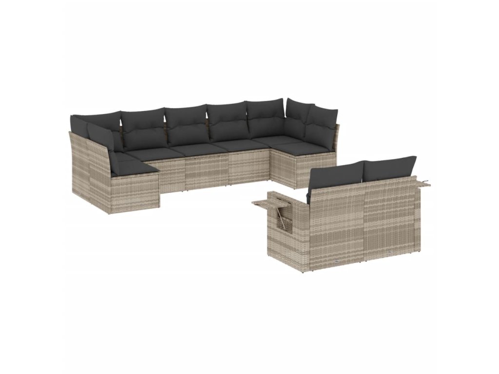 9dílná zahradní sedací souprava a podušky světle šedá polyratan 3252959
