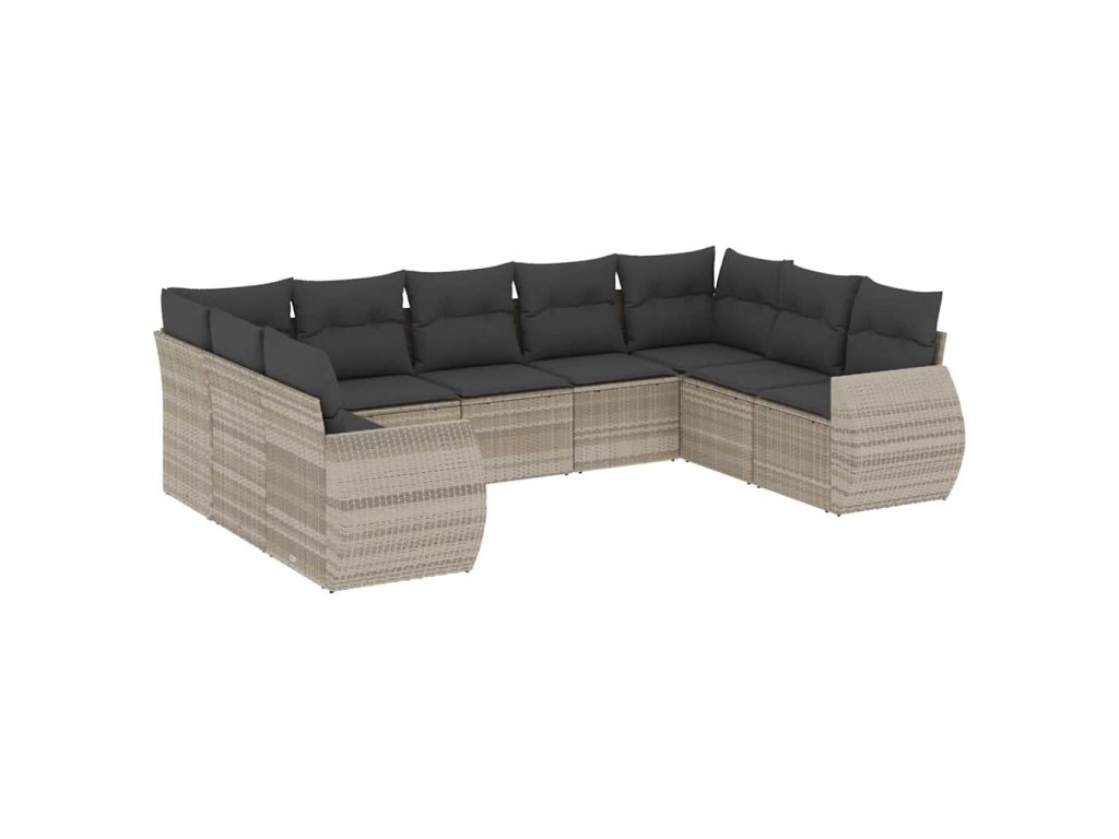 9dílná zahradní sedací souprava a podušky světle šedá polyratan 3254139