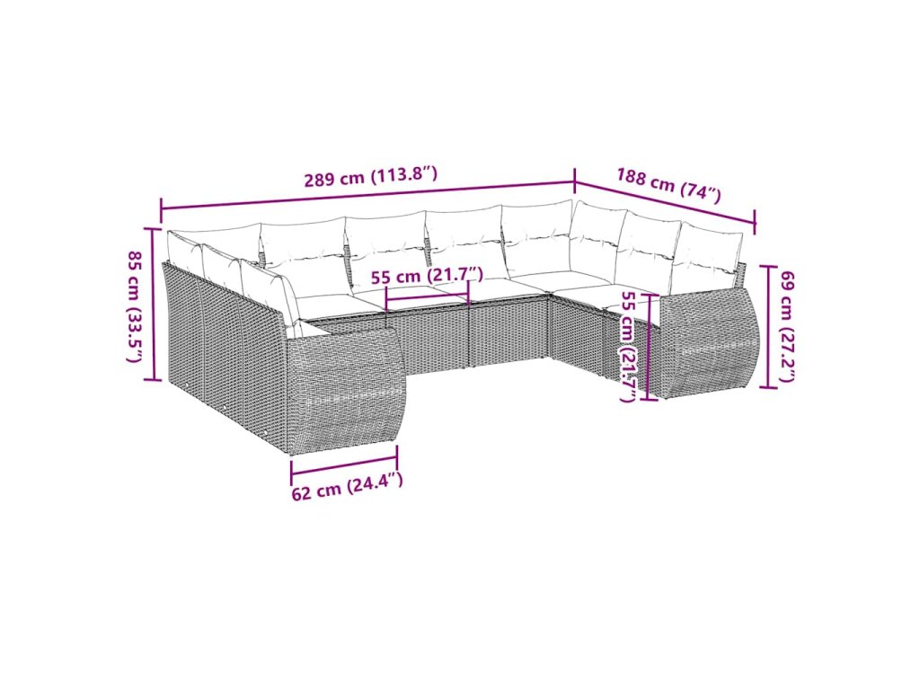 Tato zahradní sedací souprava je dokonalým doplňkem vaší zahrady, terasy nebo dvorku a poskytne vám pohodlné a příjemné místo, kde si můžete povídat s rodinou a přáteli nebo jen tak odpočívat a užívat si pobyt venku.