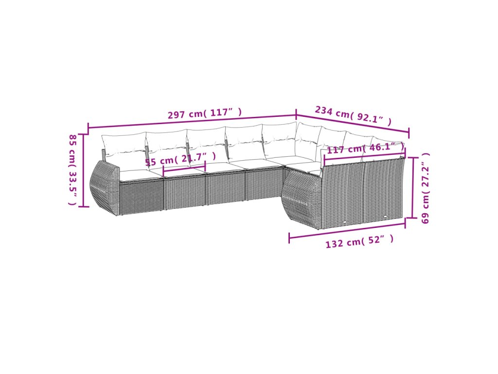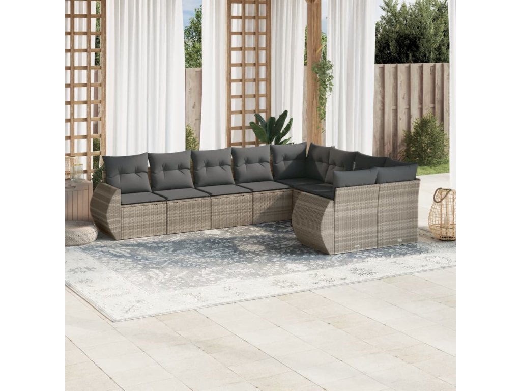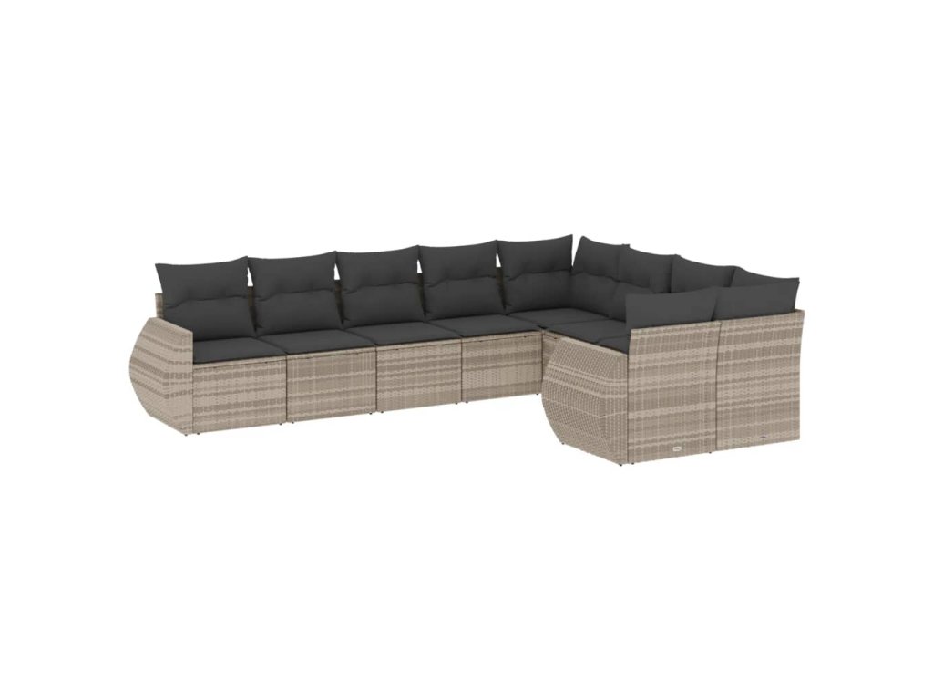 9dílná zahradní sedací souprava a podušky světle šedá polyratan 3254179
