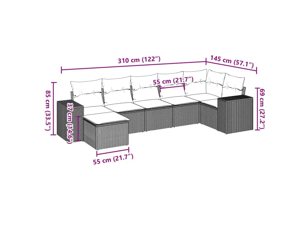 Tato zahradní sedací souprava je dokonalým doplňkem vaší zahrady, terasy nebo dvorku a poskytne vám pohodlné a příjemné místo, kde si můžete povídat s rodinou a přáteli nebo jen tak odpočívat a užívat si pobyt venku.