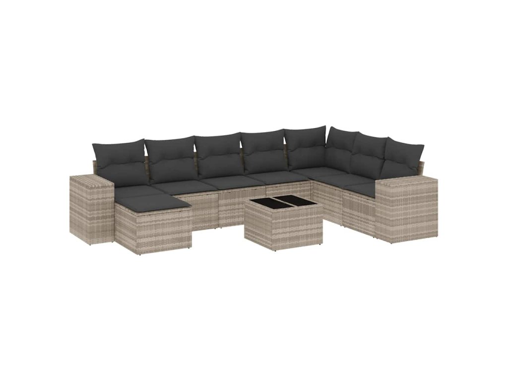 9dílná zahradní sedací souprava a podušky světle šedá polyratan 3255309
