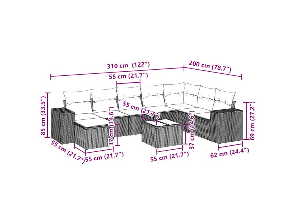 Tato zahradní sedací souprava je dokonalým doplňkem vaší zahrady, terasy nebo dvorku a poskytne vám pohodlné a příjemné místo, kde si můžete povídat s rodinou a přáteli nebo jen tak odpočívat a užívat si pobyt venku.