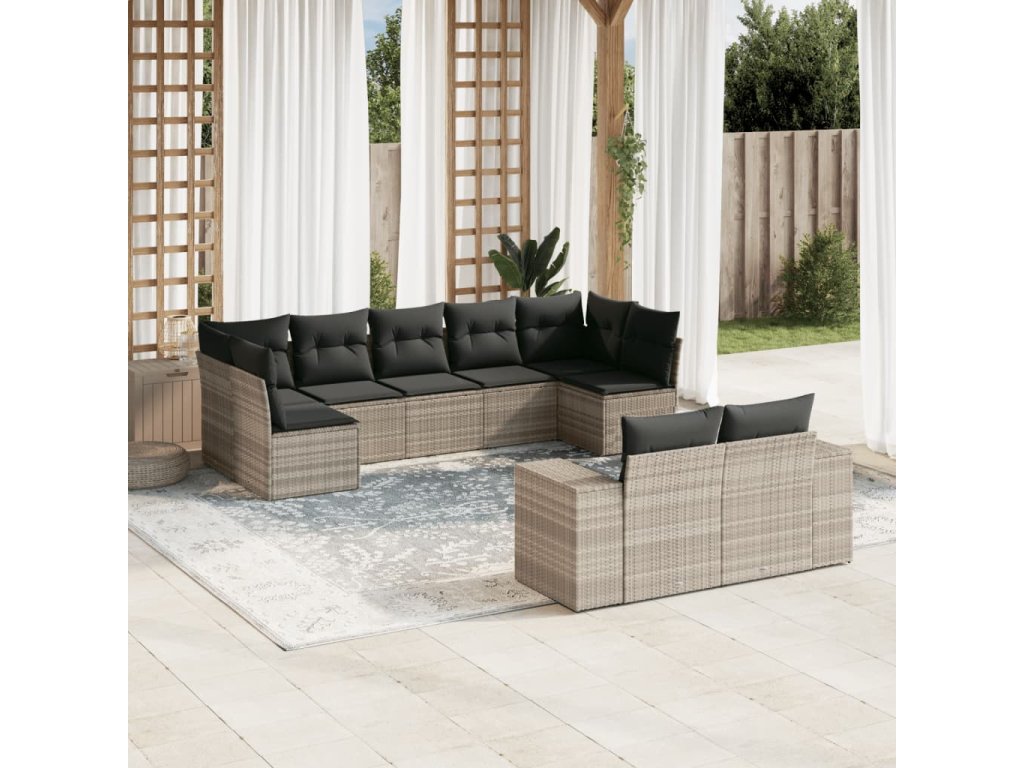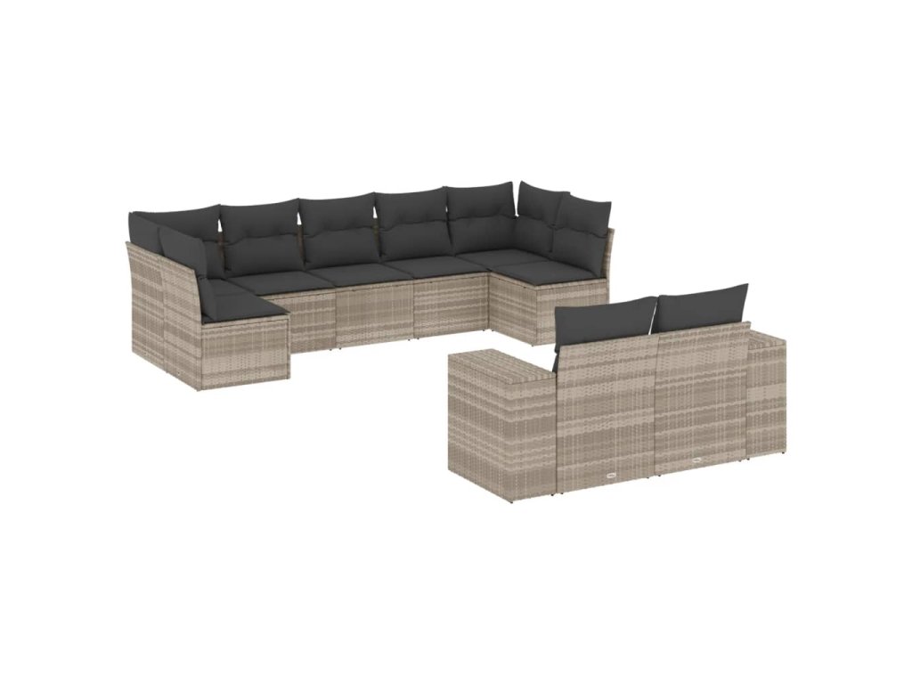 9dílná zahradní sedací souprava a podušky světle šedá polyratan 3255359