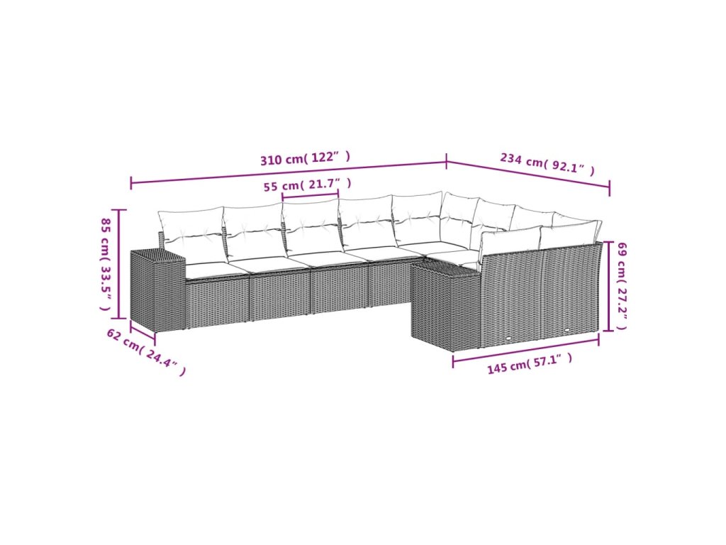Tato zahradní sedací souprava je dokonalým doplňkem vaší zahrady, terasy nebo dvorku a poskytne vám pohodlné a příjemné místo, kde si můžete povídat s rodinou a přáteli nebo jen tak odpočívat a užívat si pobyt venku.