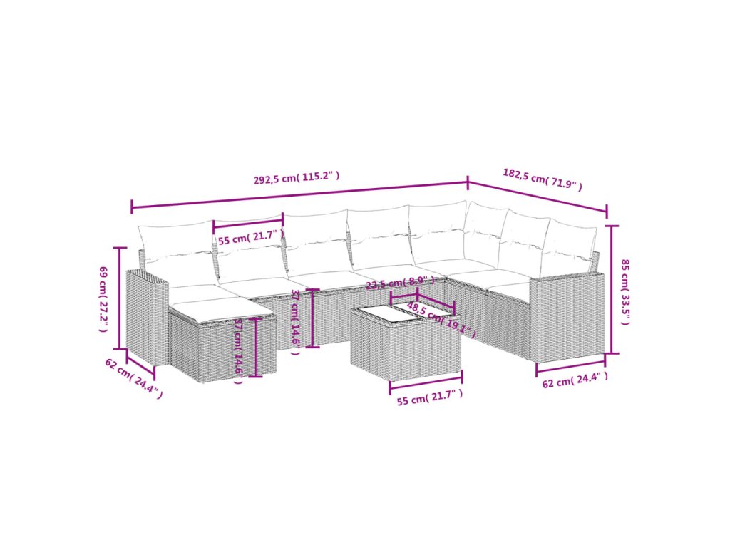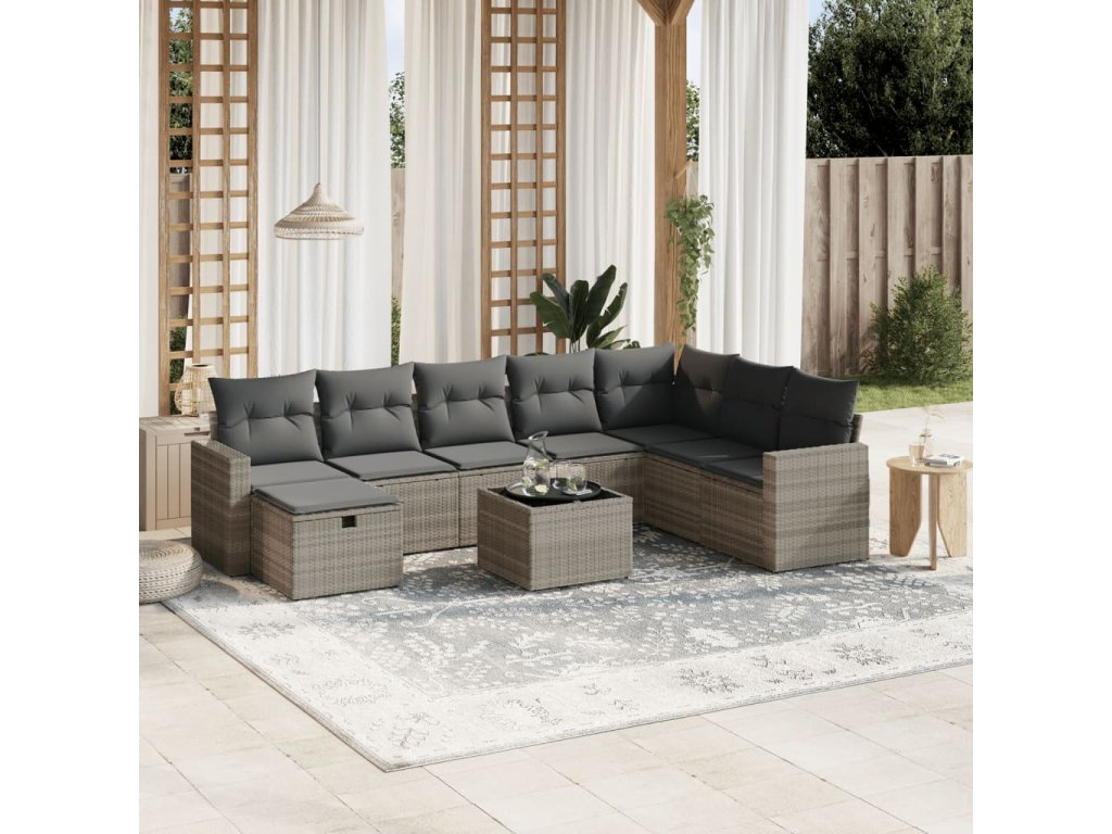 9dílná zahradní sedací souprava a podušky světle šedá polyratan 3263598