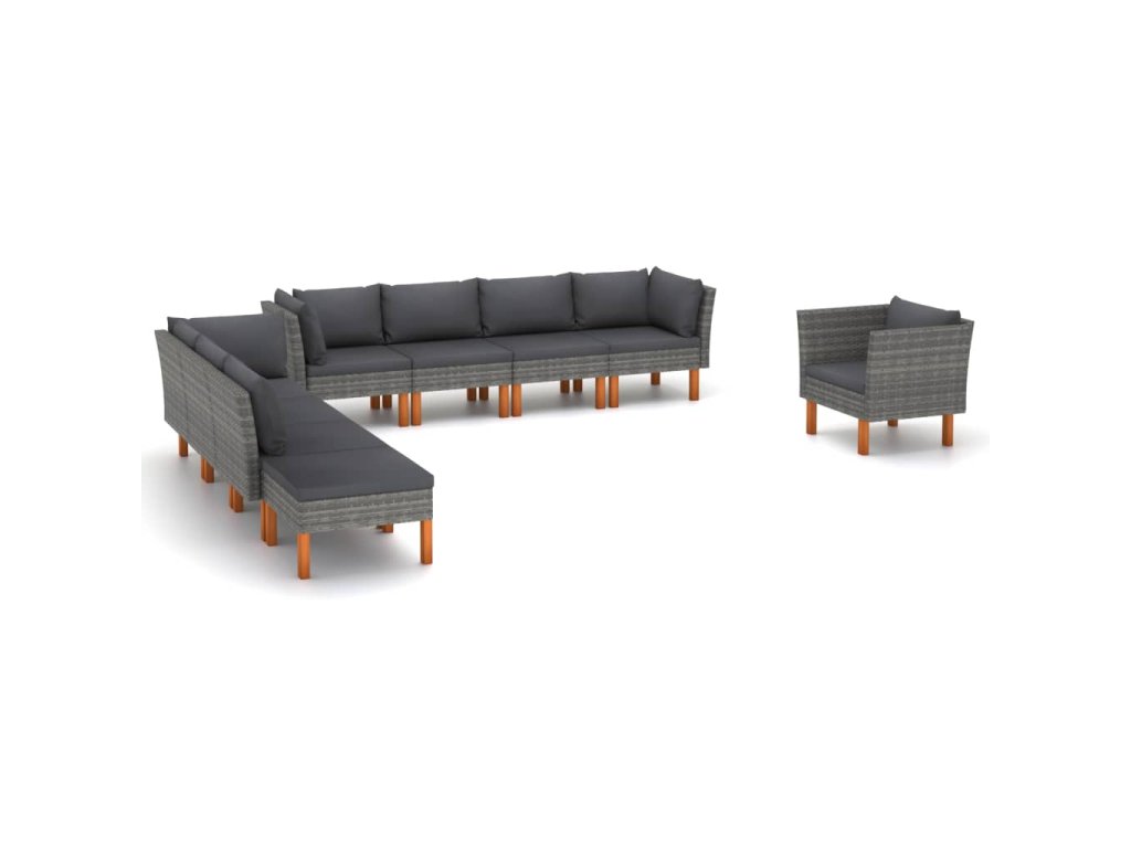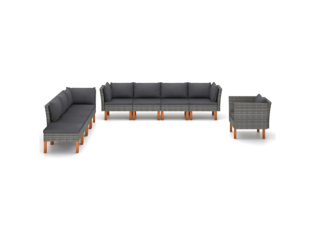 9dílná zahradní sedací souprava polyratan a eukalyptus šedá 3082088