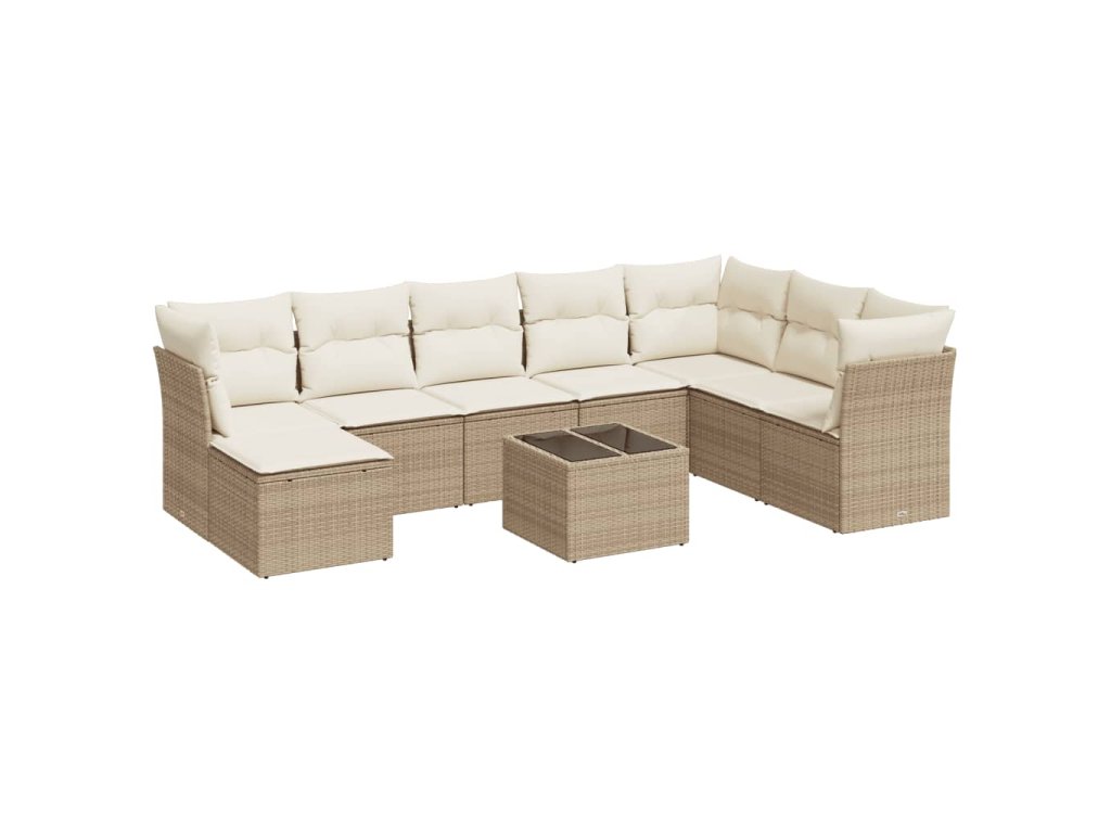9dílná zahradní sedací souprava s poduškami béžová polyratan 3218058