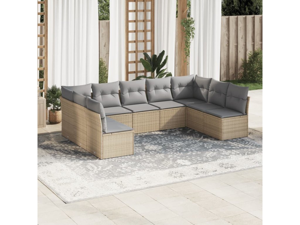 9dílná zahradní sedací souprava s poduškami béžová polyratan 3218069