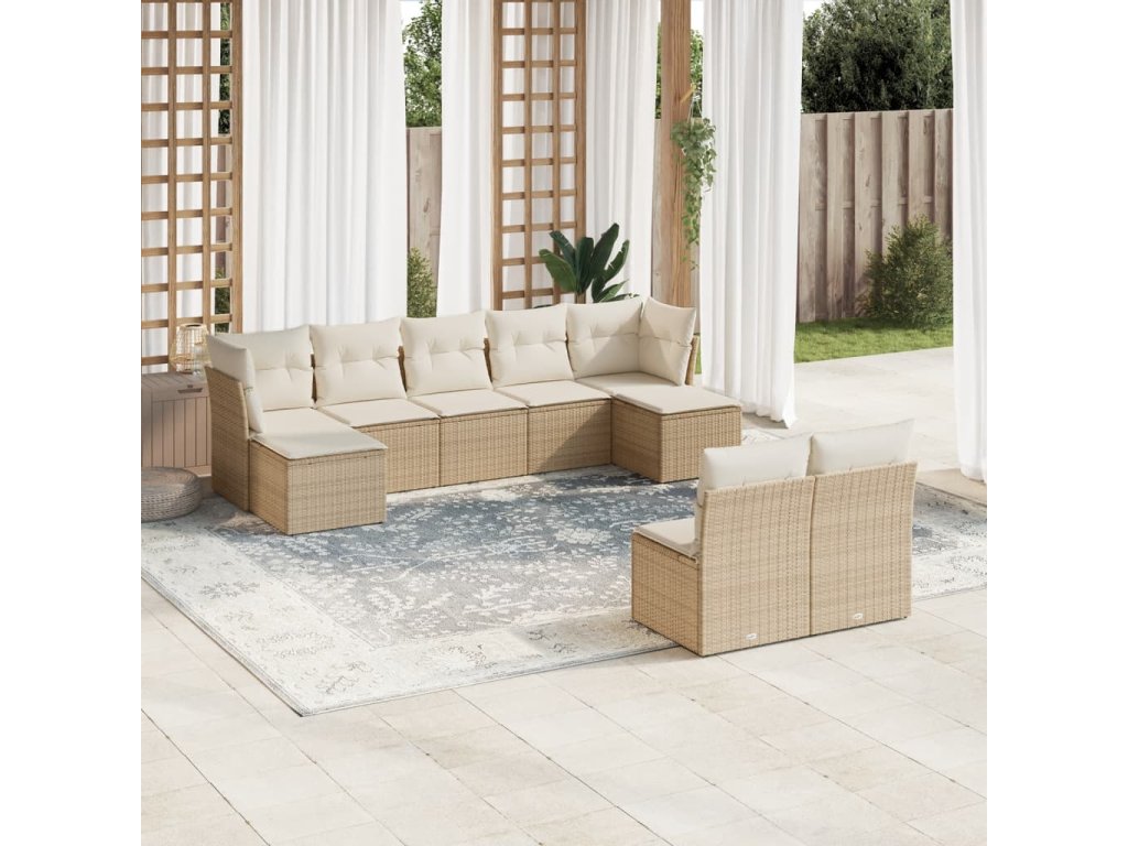 9dílná zahradní sedací souprava s poduškami béžová polyratan 3218268