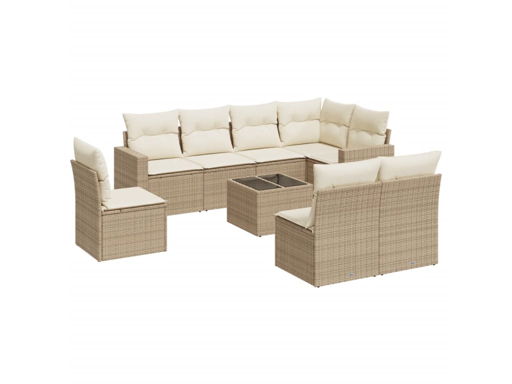 9dílná zahradní sedací souprava s poduškami béžová polyratan 3219068