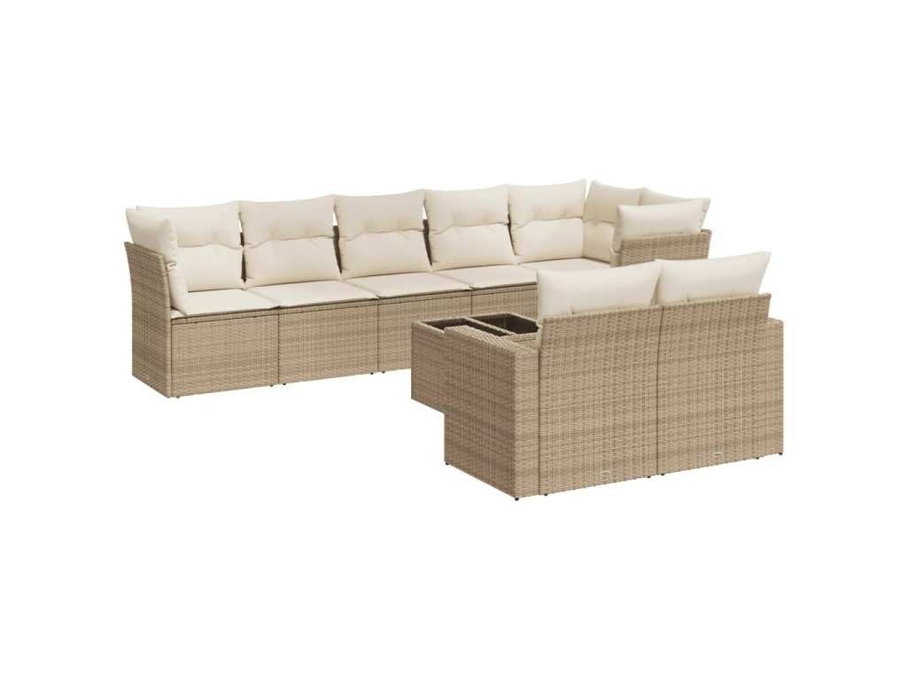 9dílná zahradní sedací souprava s poduškami béžová polyratan 3219218