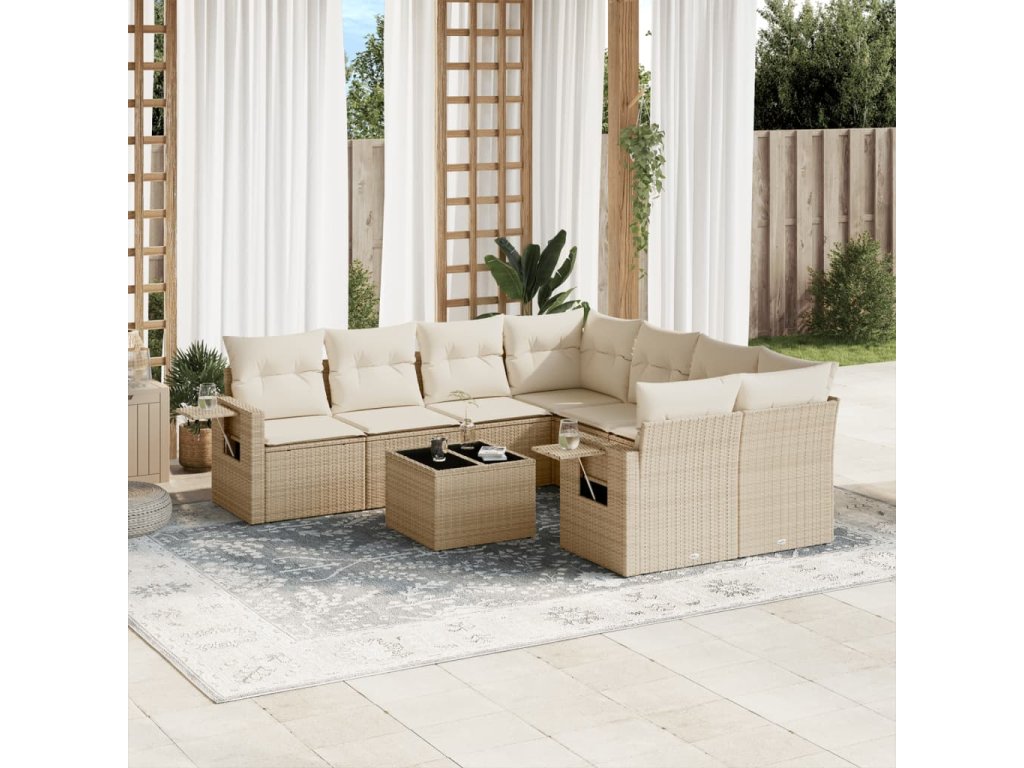 9dílná zahradní sedací souprava s poduškami béžová polyratan 3219957
