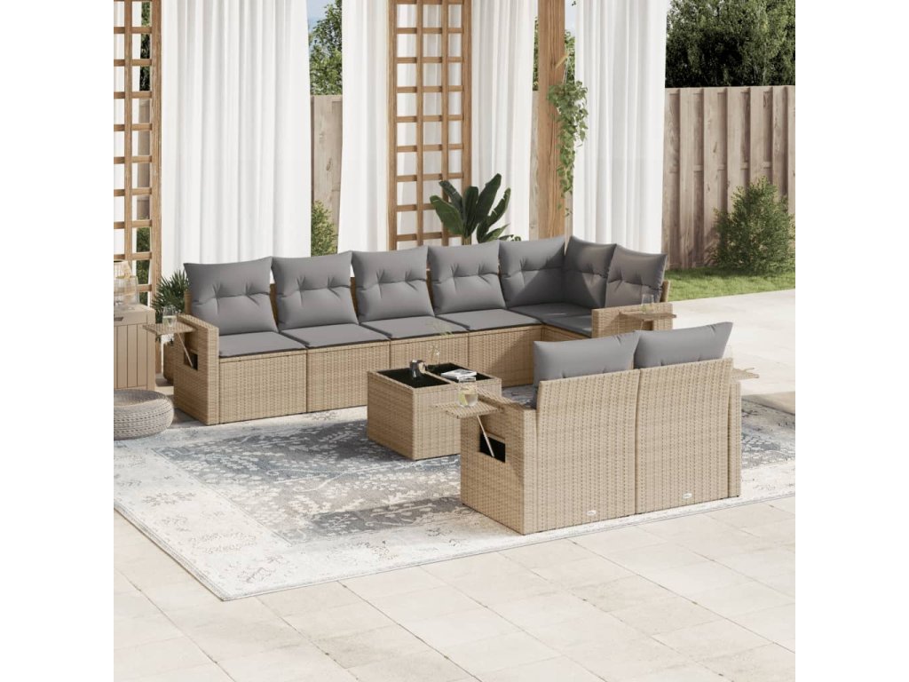 9dílná zahradní sedací souprava s poduškami béžová polyratan 3220428