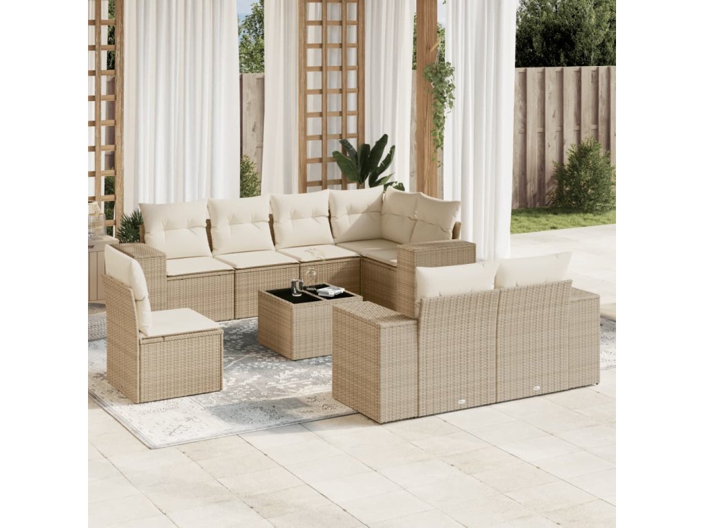 9dílná zahradní sedací souprava s poduškami béžová polyratan 3222847