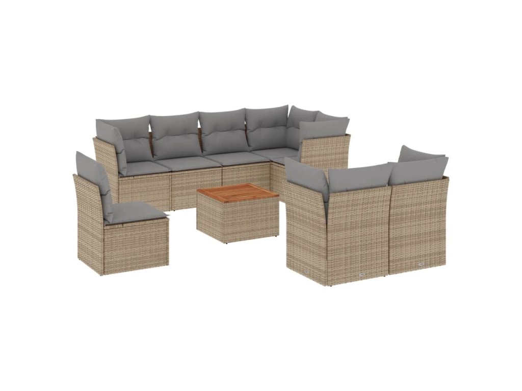 9dílná zahradní sedací souprava s poduškami béžová polyratan 3223742