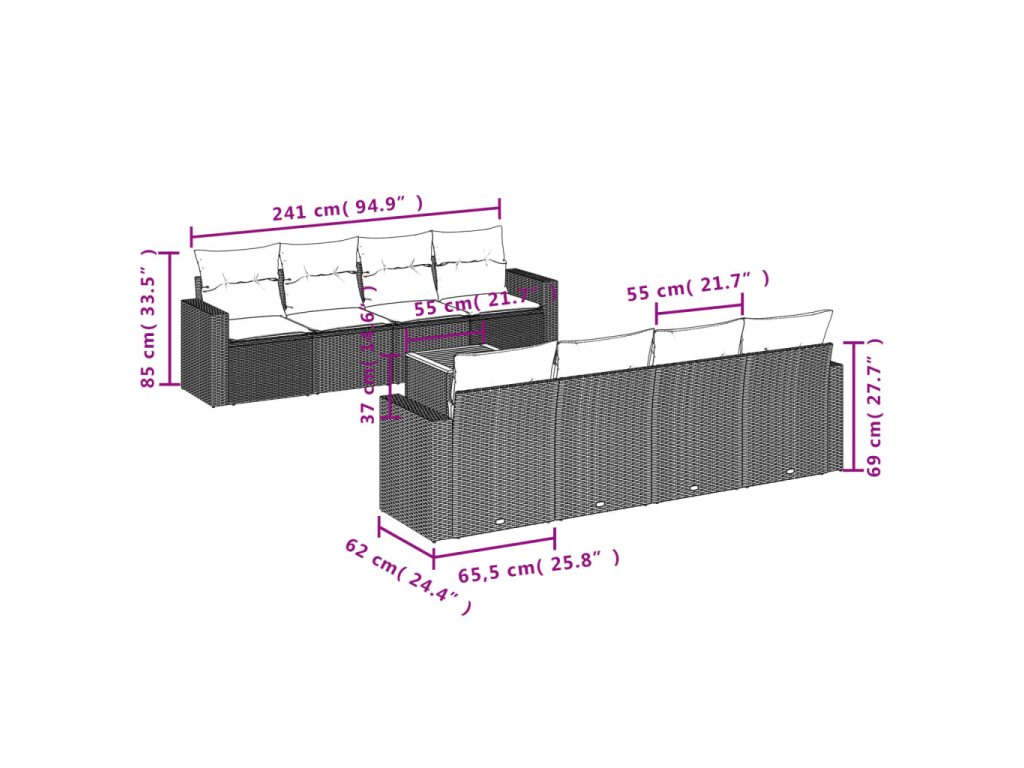 9dílná zahradní sedací souprava s poduškami béžová polyratan 3224042