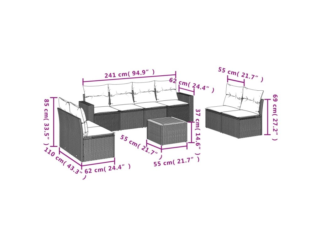 9dílná zahradní sedací souprava s poduškami béžová polyratan 3224085