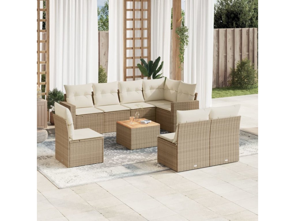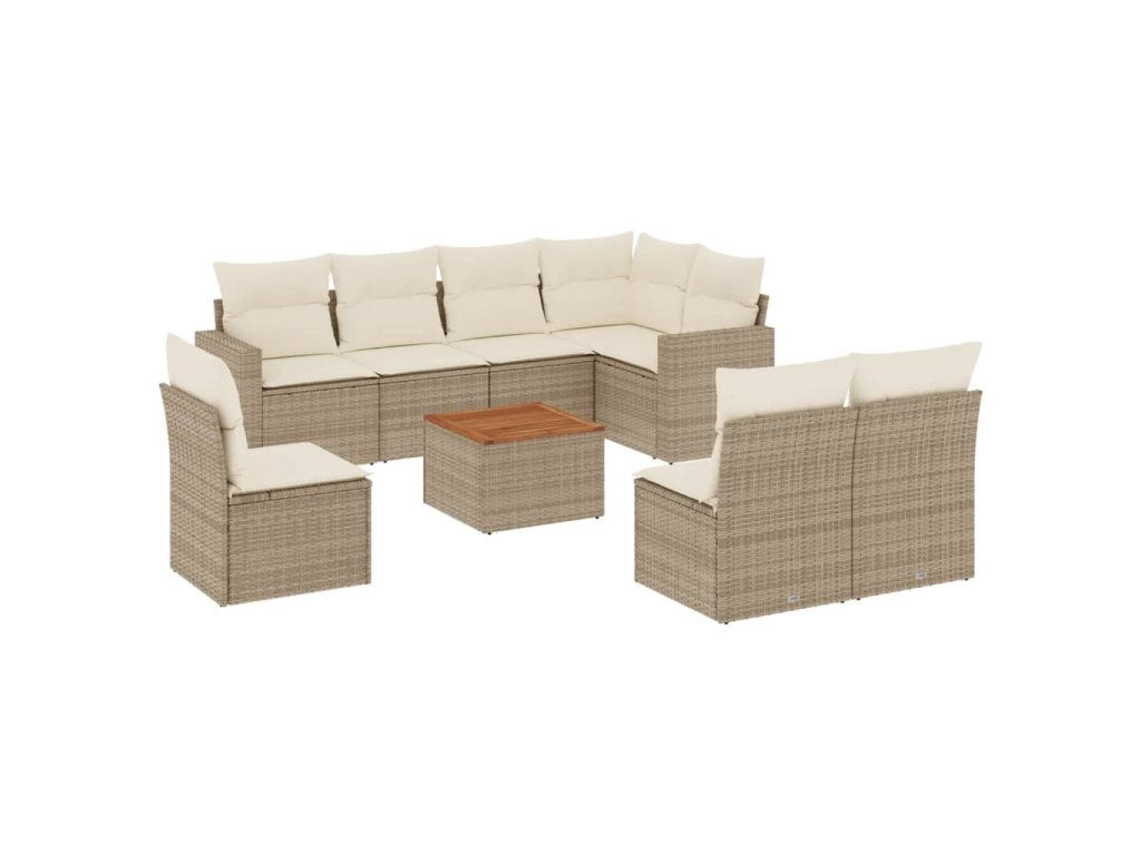 9dílná zahradní sedací souprava s poduškami béžová polyratan 3224161