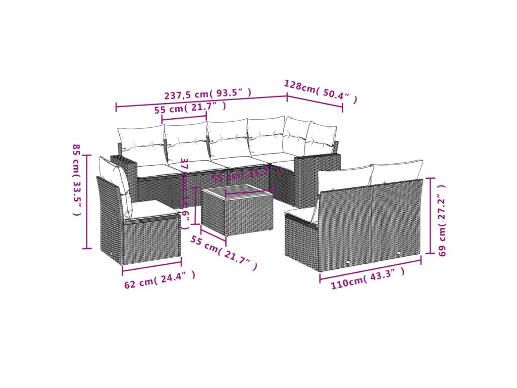 Tato zahradní sedací souprava je dokonalým doplňkem vaší zahrady, terasy nebo dvorku a poskytne vám pohodlné a příjemné místo, kde si můžete povídat s rodinou a přáteli nebo jen tak odpočívat a užívat si pobyt venku.
